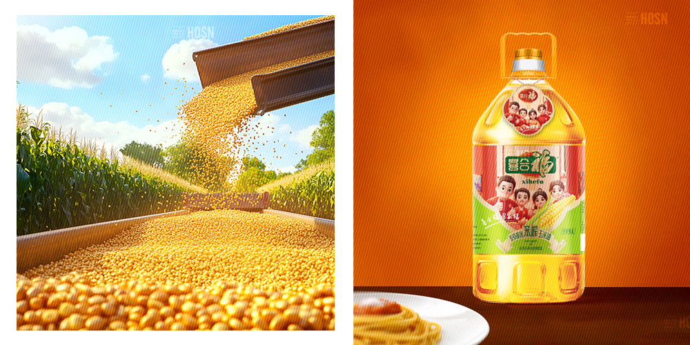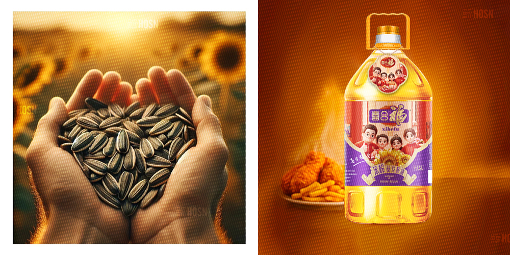 系列化色彩逻辑:针对大豆油、葵花籽油等不同品类,采用红、紫、绿等强识别色彩区分,既统一品牌视觉语言,又能让消费者 “秒辨品类”,加速购买决策。
